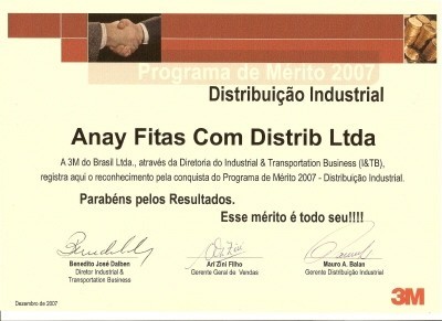A Anay Fitas recebeu no mês de abril de 2008 importante distinção da 3M na linha de Distribuição Industrial.